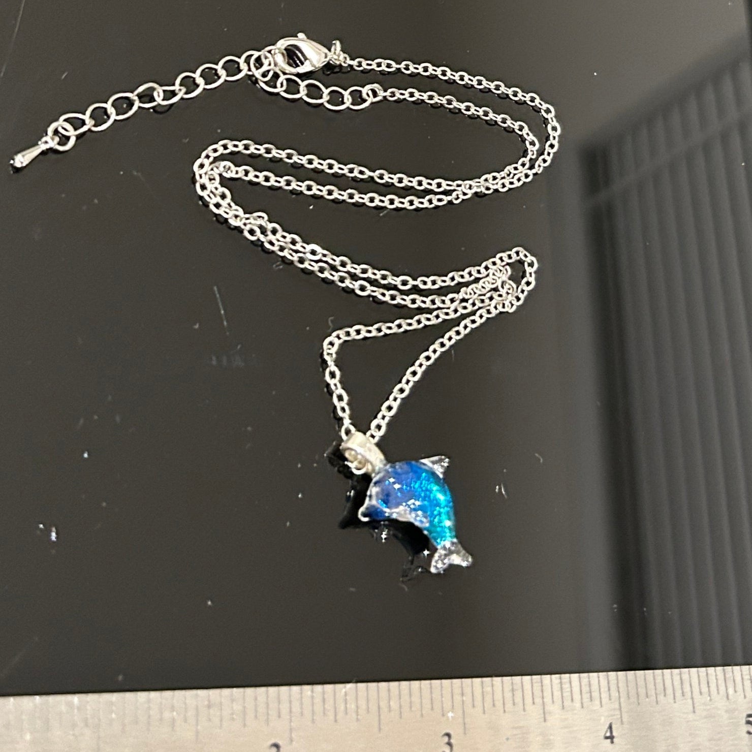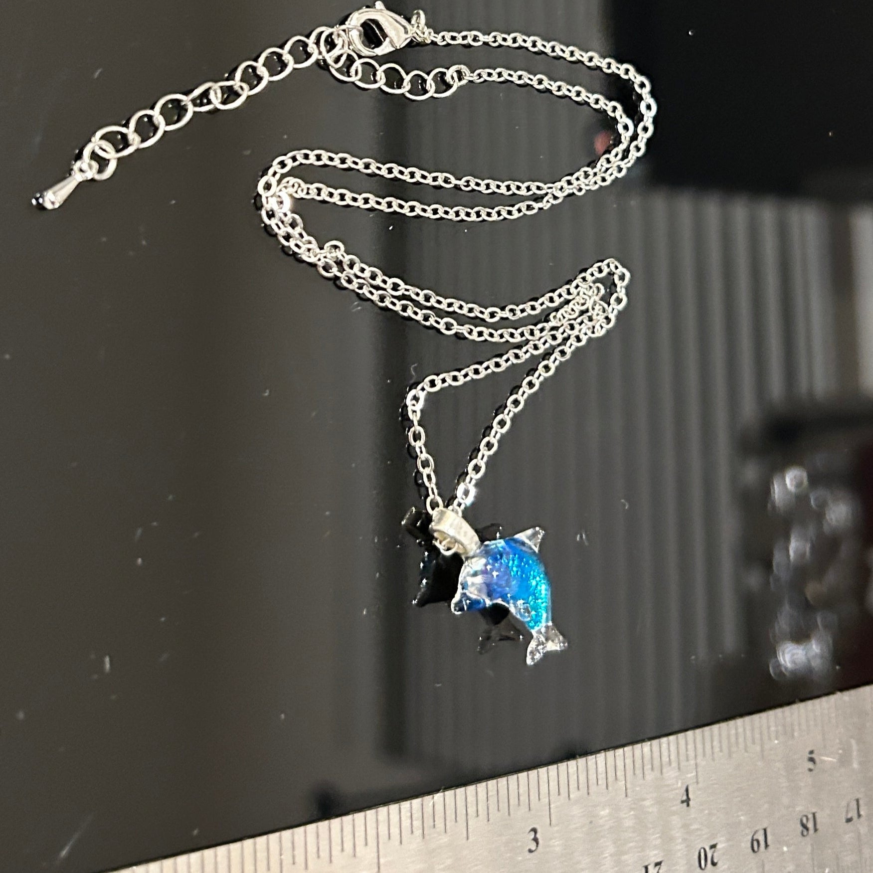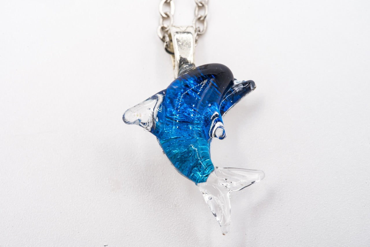Blue Dichroic Glass Dolphin Pendant - Handcrafted 1.25 Inch Ocean Wildlife Design | Mars Glass Artisan Collection